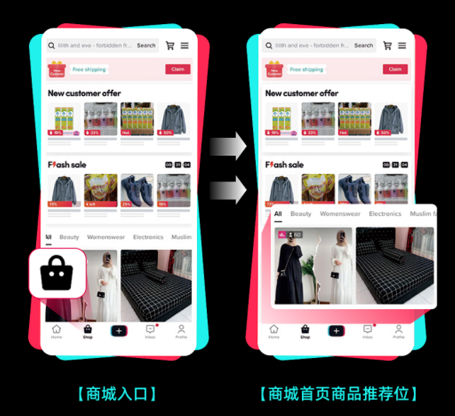 优化的商店和产品会出现在购物页面(Shop Tab)的显着位置,例如显示顶部横幅(Top Banner)、Feed栏 (Feed Tab) 、活动页面(Campaign Page) 以及TikTok的主页Shop Mall。