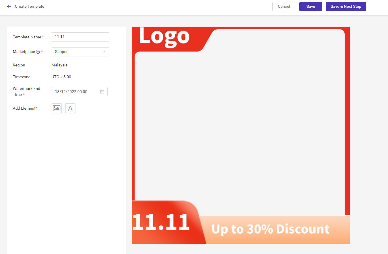 For promotion watermark, just as its name implies, this type watermark is used during promotion or campaign, for example, 11.11 sales. The difference from common watermarks is that promotion watermarks will be automatically deleted when promotion ends. You can publish the watermarks when your campaign starts and BigSeller will remove it when the promotion ends.