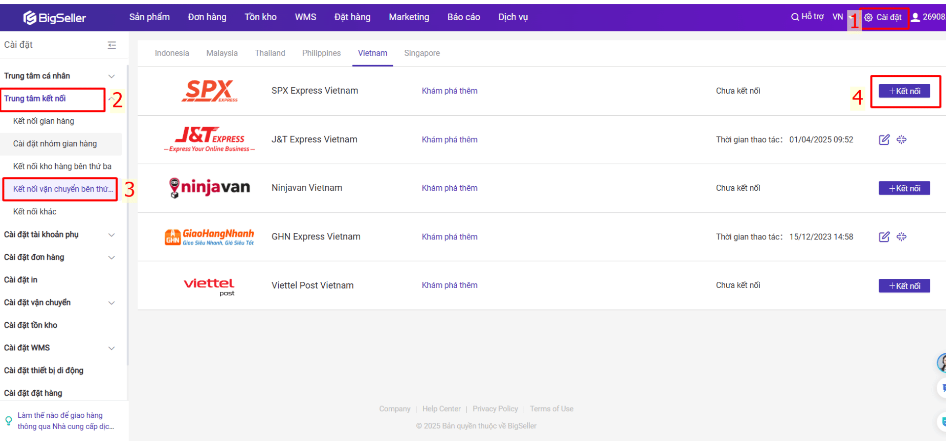Kết nối tài khoản SPX Express vào BigSeller theo hướng dẫn như sau để theo dõi đơn hàng SPX Express: