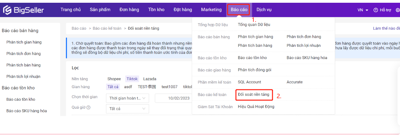 5. Đối soát công nợ TikTok Shop trên BigSeller